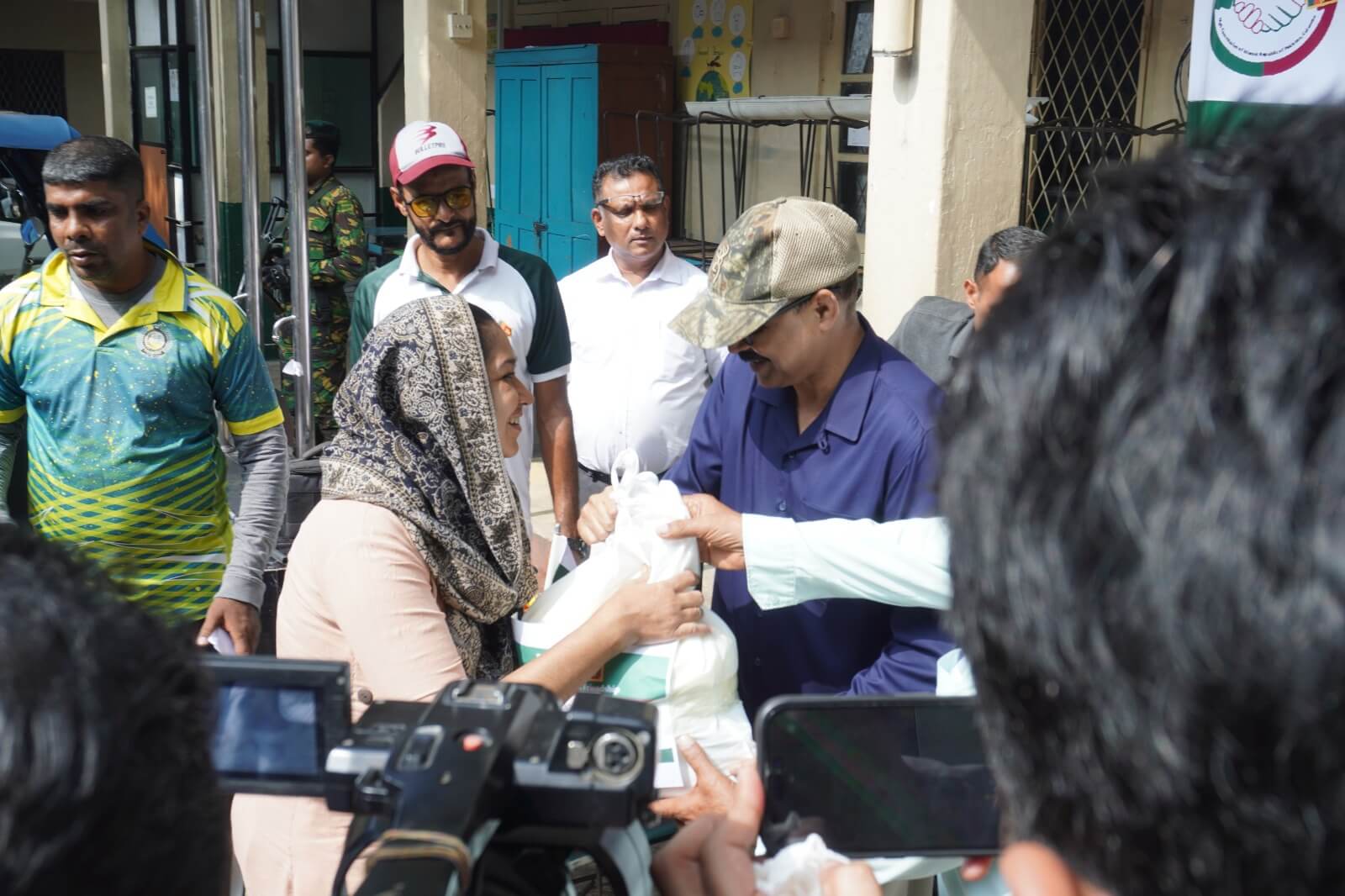 Demonstrating the strong bond between the two nations, officials distributed essential dry ration packs to families displaced or impacted by the adverse weather. The relief bags, prominently displaying the message “Always Standing with Sri Lankan Brethren,” contained rice, flour, and other staple food items to provide immediate sustenance.